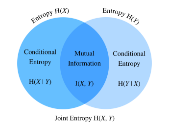 Knowing conditional entropy means knowing the amount of information contained in \(Y\) but not in \(X\). Now let see how much information is shared between \(X\) and \(Y\).