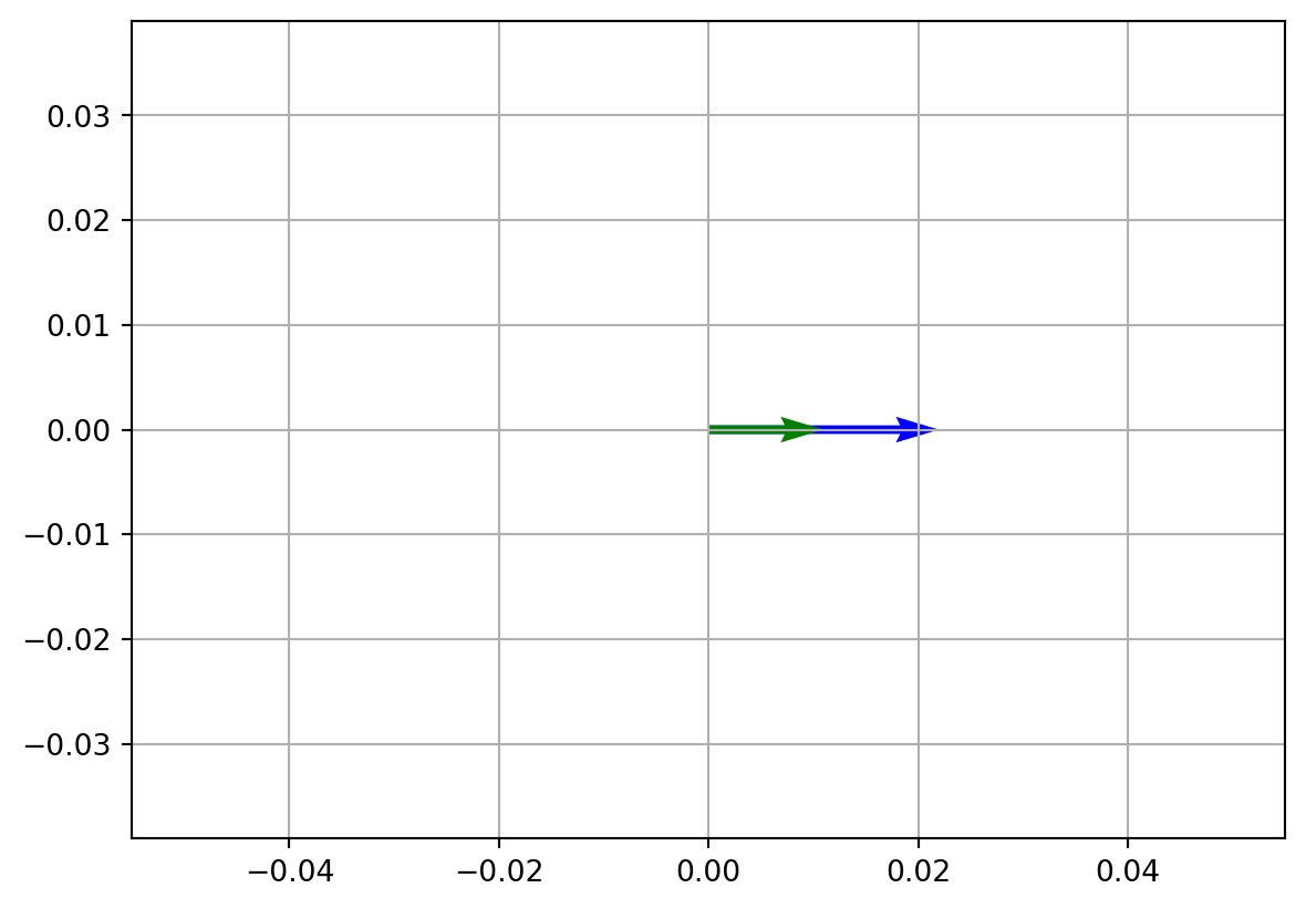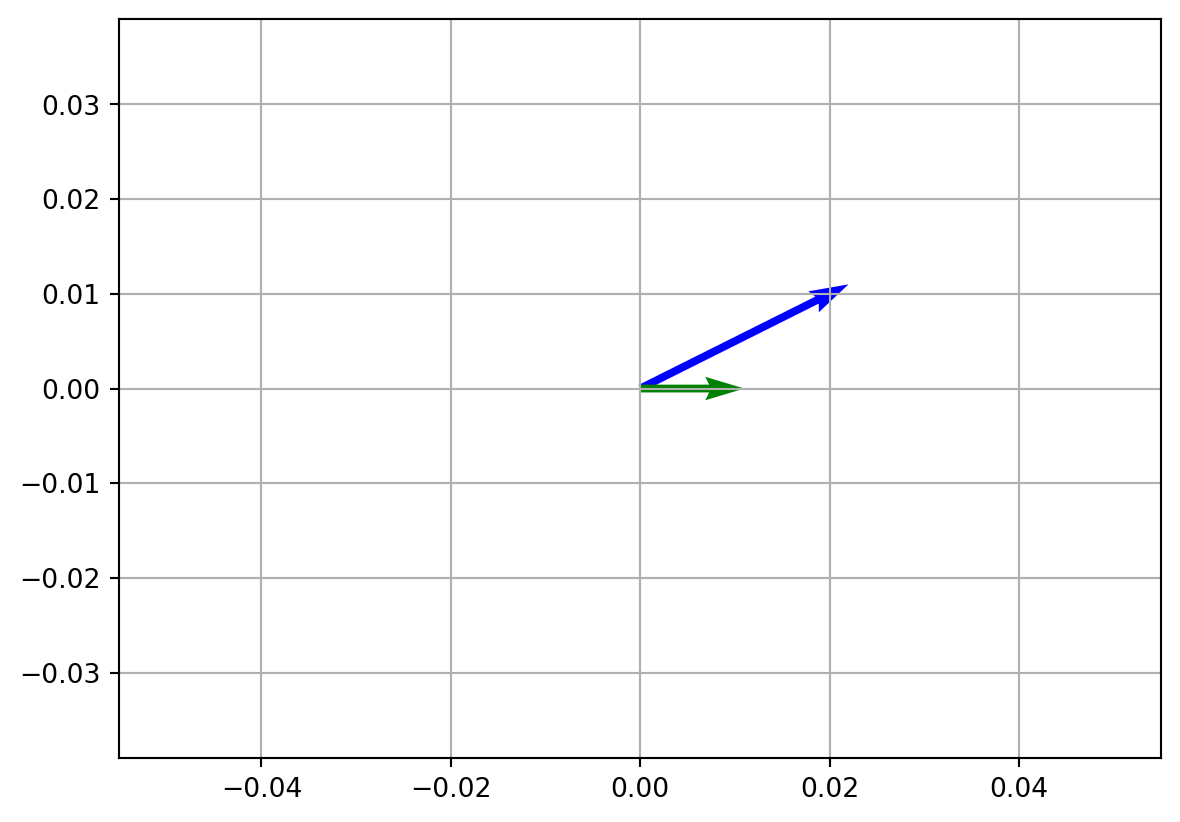plt.quiver(0, 0, *v, color=["green"], scale=10)