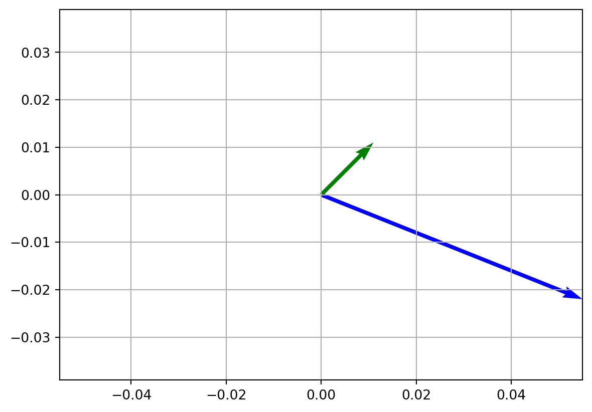 \[ A = \begin{bmatrix} 0 & -1 \\ 1 & 0 \end{bmatrix} \quad \vec{v} = \begin{bmatrix} 1 \\ 0 \end{bmatrix} \]
